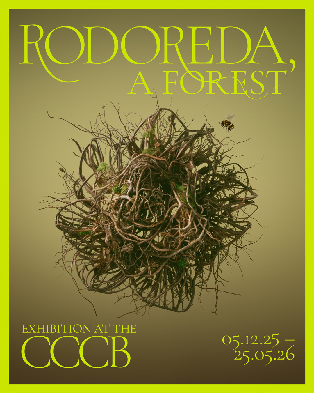 A partir d'una idea d'elements icònics de l'univers de Rodoreda creats amb arrels, amb els companys de Wild Pony vam desenvolupar un cor, un ocell, una flor i una mà íntegrament fets d'arrels. Les tècniques utilitzades són generació amb IA i retoc digital.